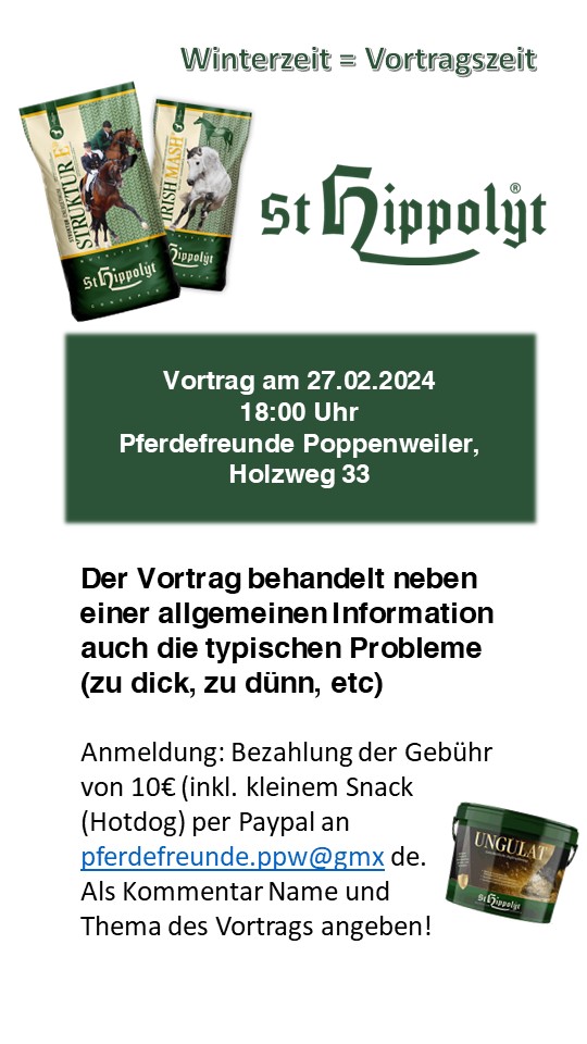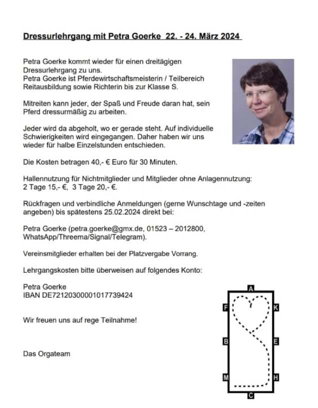 - Anmeldung bis zum 04.09.2024 an Pferdefreunde.ppw@gmx.de, nach Anmeldebestätigung Bezahlung vorab per Paypal an Freunde an pferdefreunde.ppw@gmx.de. Unbezahlte Anmeldungen erhalten keine Startzeit
