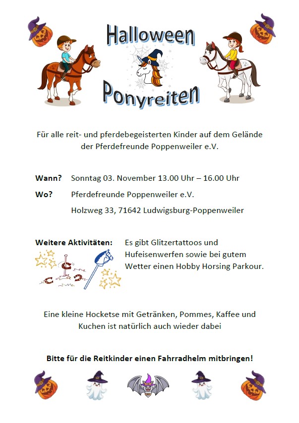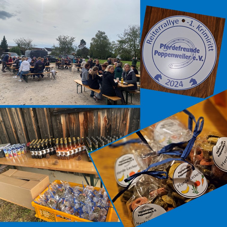 am 29.09.2024 fand nach vielen Jahren wieder eine Pferderallye rund um das Gelände der Pferdefreunde Poppenweiler statt. Diesmal fand der Ritt unter dem Motto „Krimiritt“ statt. Das bedeutete, die Reiter konnten auf der 12 km langen Strecke an 6 Stationen durch Geschicklichkeits- und Wissensaufgaben Punkte sammeln. Nachdem es um den Kriminalfall „Brandanschlag auf die Rennbahn“ ging, hatten viele der Spiele mit Wasser und Feuer zu tun. An jeder Station erhielten sie auch Hinweise zum Kriminalfall.